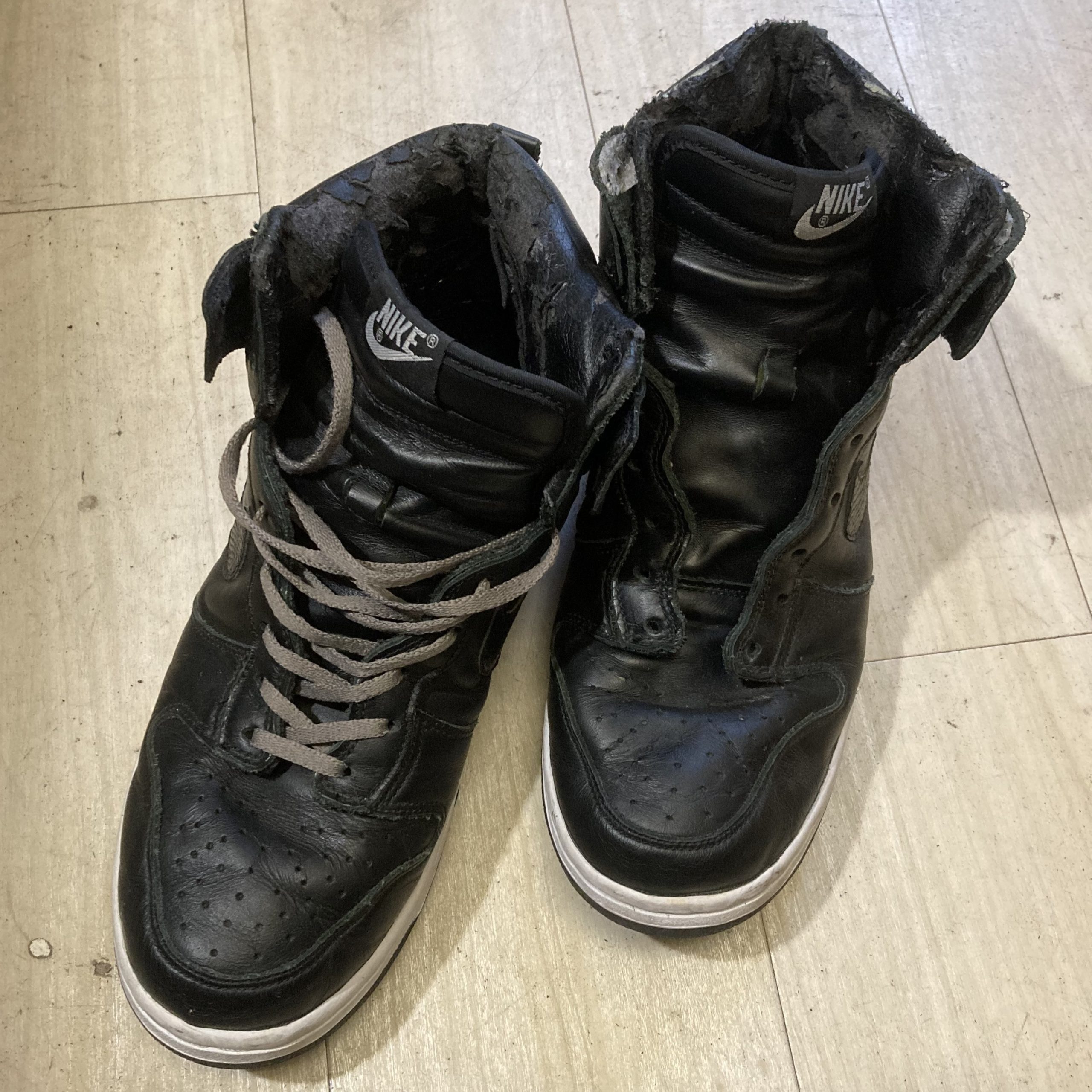 Stussy x Nike Dunk High Plus " Snake Black " 2001年モデルです。アンクル内側のフェイクレザーが、経年で表面剝離しボロボロに、、。